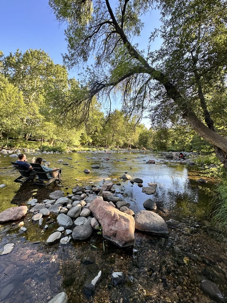 Take a gentle walk, notice the creek, the trees, the red rocks—let your nervous system learn a new rhythm.
